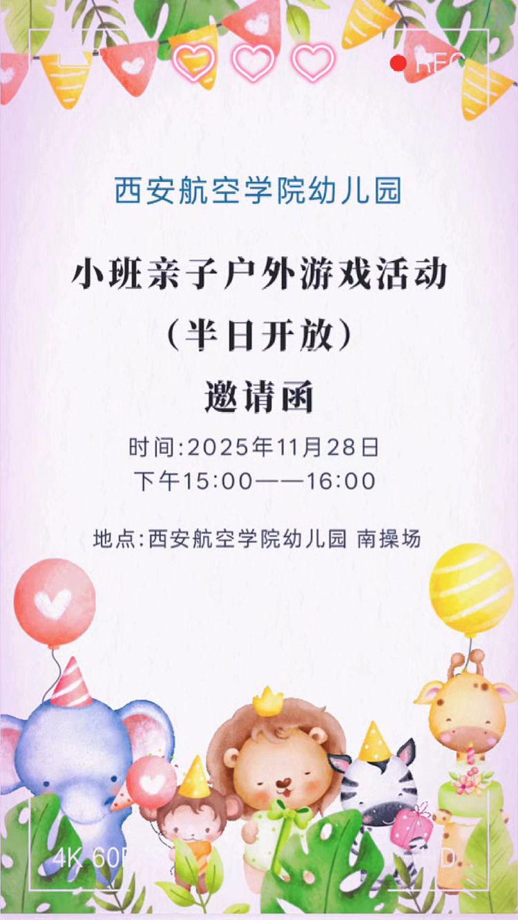 为进一步促进家园联系与交流,帮助家长更直观地了解幼儿在园生活,增进幼儿园、教师、家长之间的联系与沟通,更好地实现家园共育,2025年11月28日15:00——16:00,西安航空学院幼儿园小班邀请全体家长参加“萌宝乐游玩 亲子暖心聚”亲子游戏活动。让家长们以参与者和陪伴者的身份零距离体验和感受孩子们在幼儿园成长的快乐。