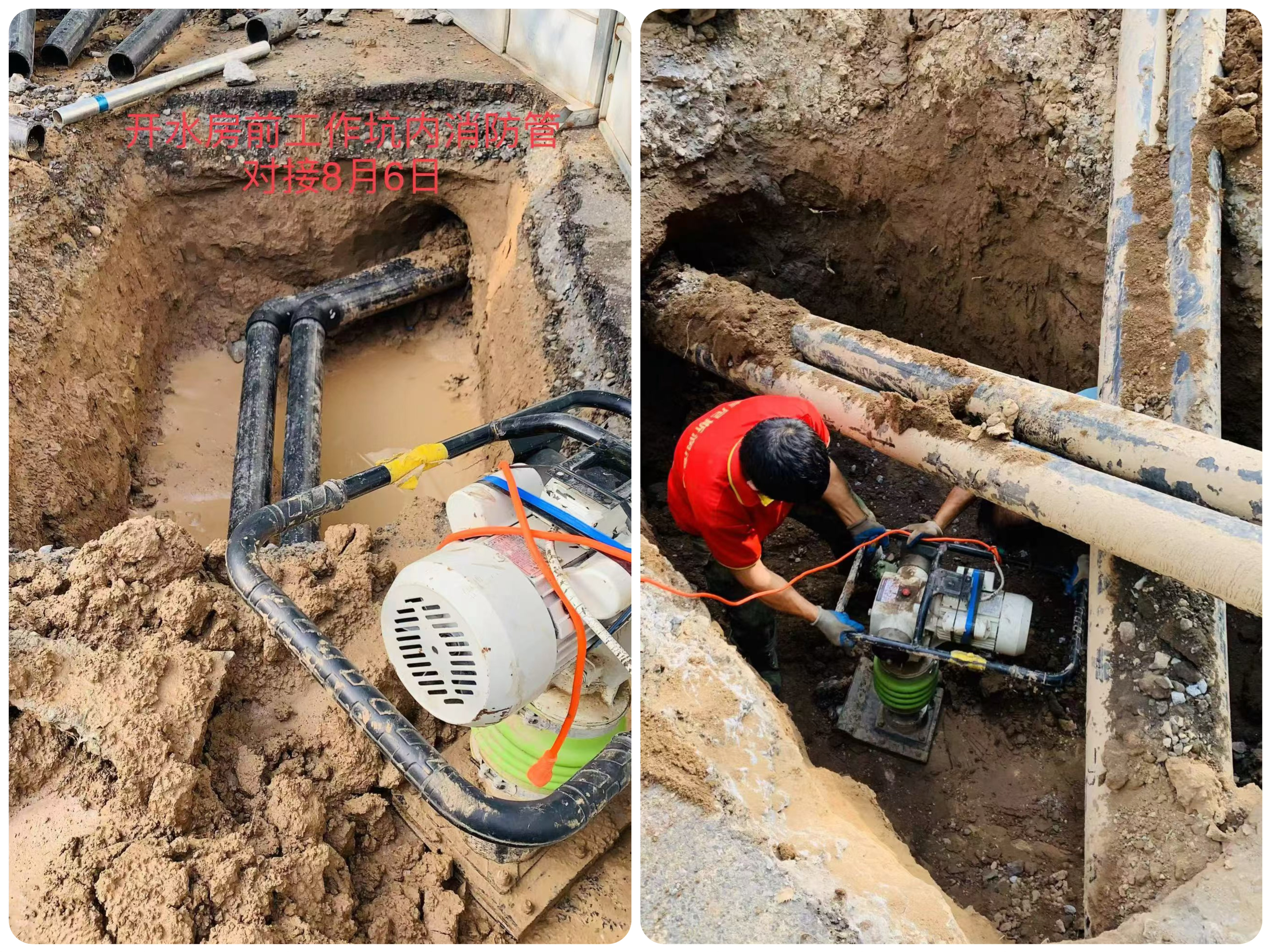 图2-3消防管道对接,基坑回填夯实