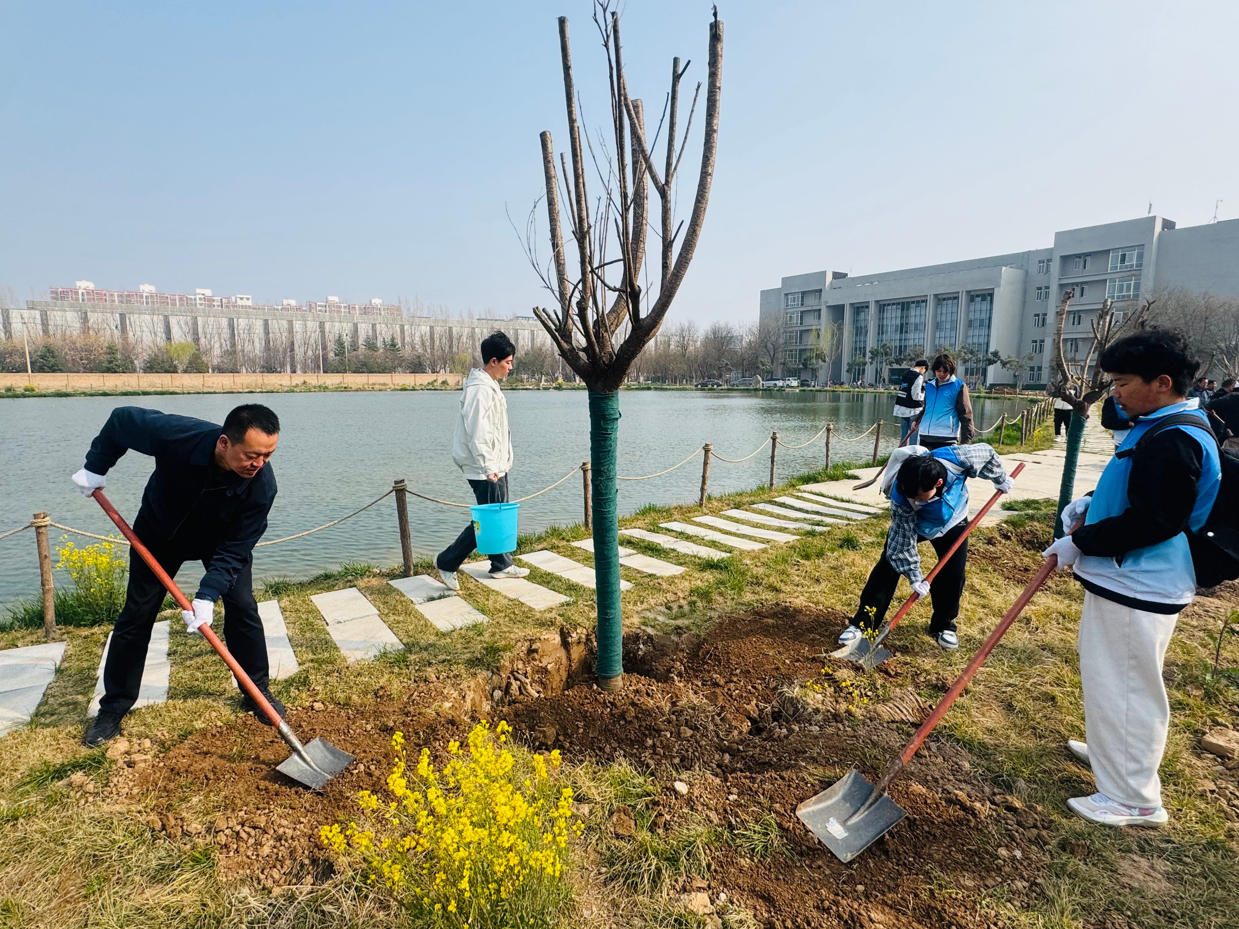 阳春三月,草木秀润,新绿初绽。3月12日,在第48个植树节到来之际,学校在阎良校区组织开展义务植树活动。党委副书记张昭、宁永录,副校长李永刚,各二级学院、职能处室负责人,以及50余名学生志愿者和获奖受助学生代表共同挥锹添绿。