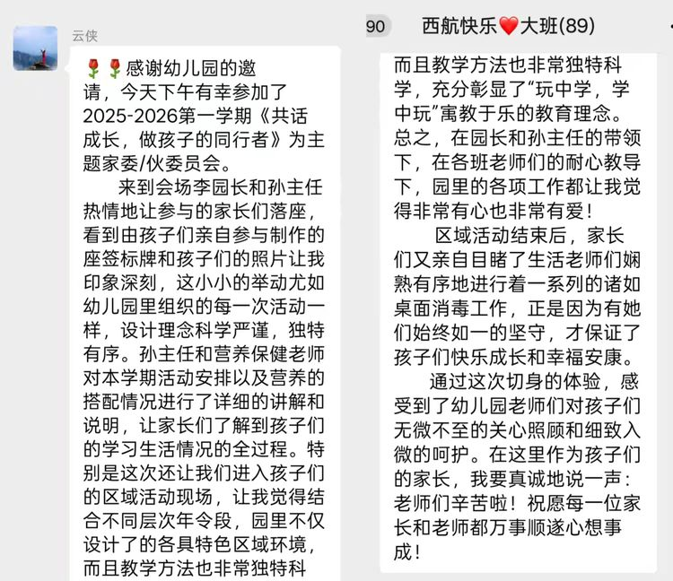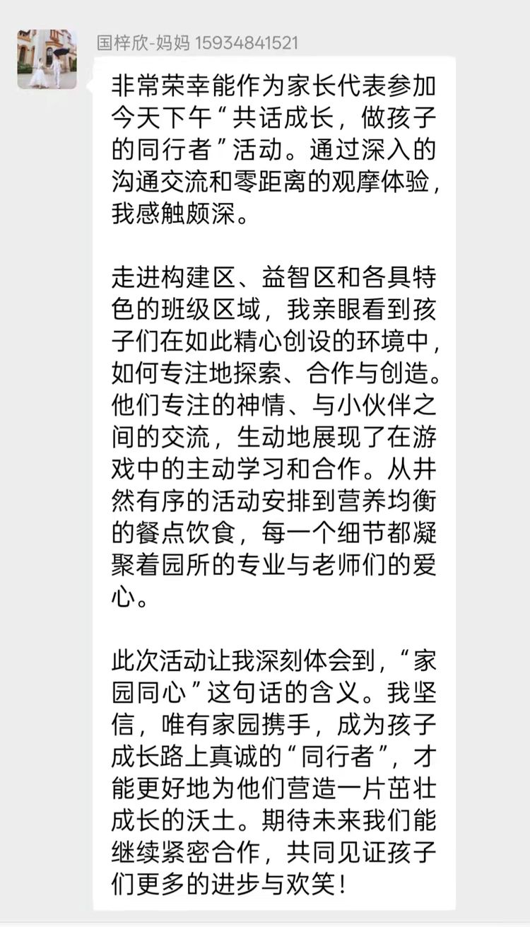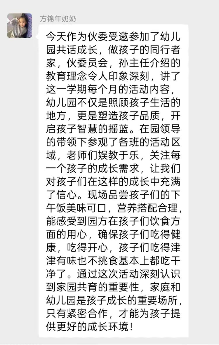 会议结束后,家、伙委员们积极将会议内容反馈到班级群,充分发挥家园共育的桥梁纽带作用,配合幼儿园与班级教师的工作,形成教育合力,共勉、共进、共筑幼儿美好未来。