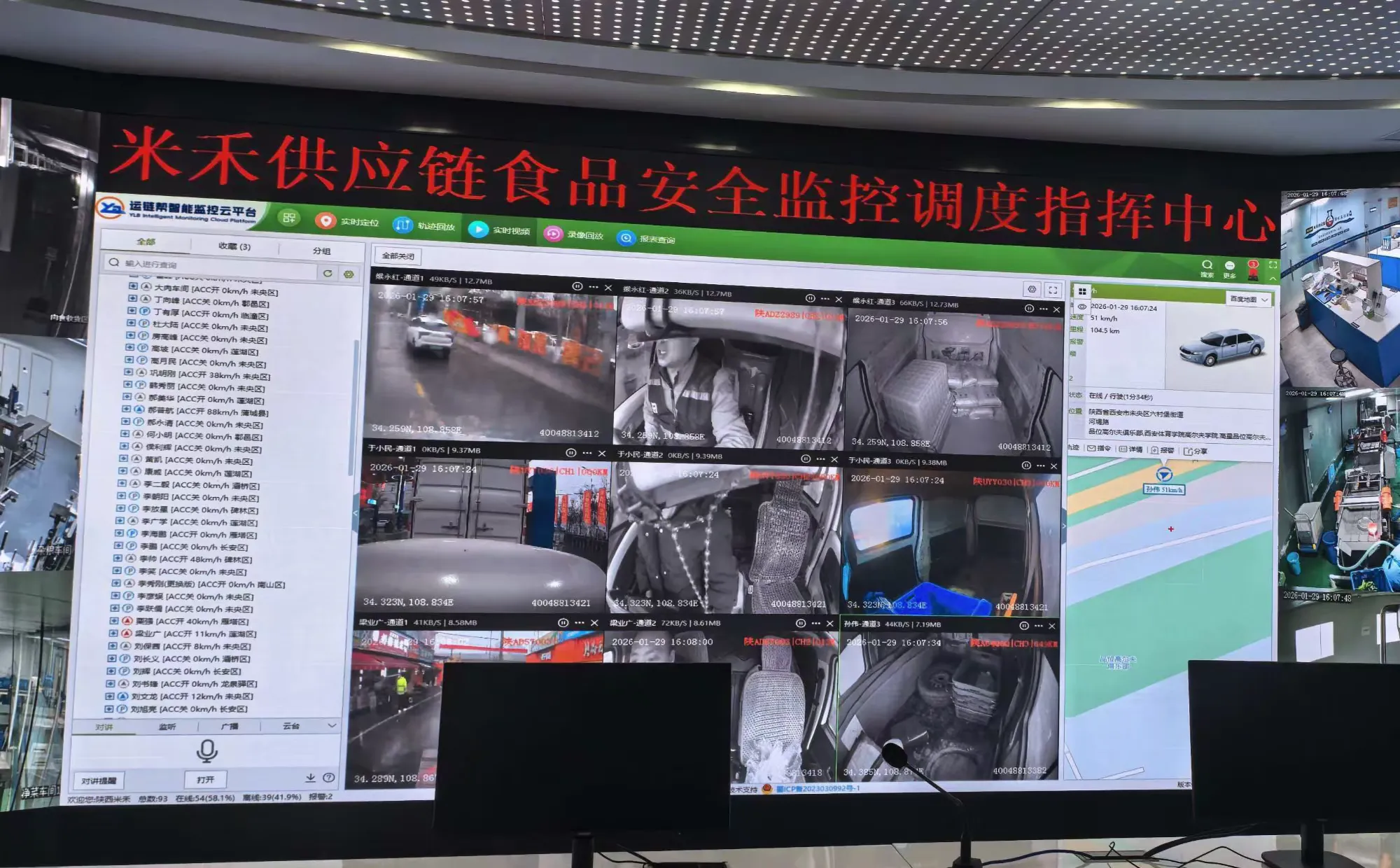随后,一行人步入米禾配送基地,干净整洁的环境瞬时映入眼帘。基地负责人刘经理首先详细介绍了配送车辆的管理规范:每辆车均实行专人负责制度,每日配送前后都会进行全面清洗消毒,同时配备车温远程监控系统,全程精准把控运输温度,从运输环节守住食材新鲜与安全底线。
