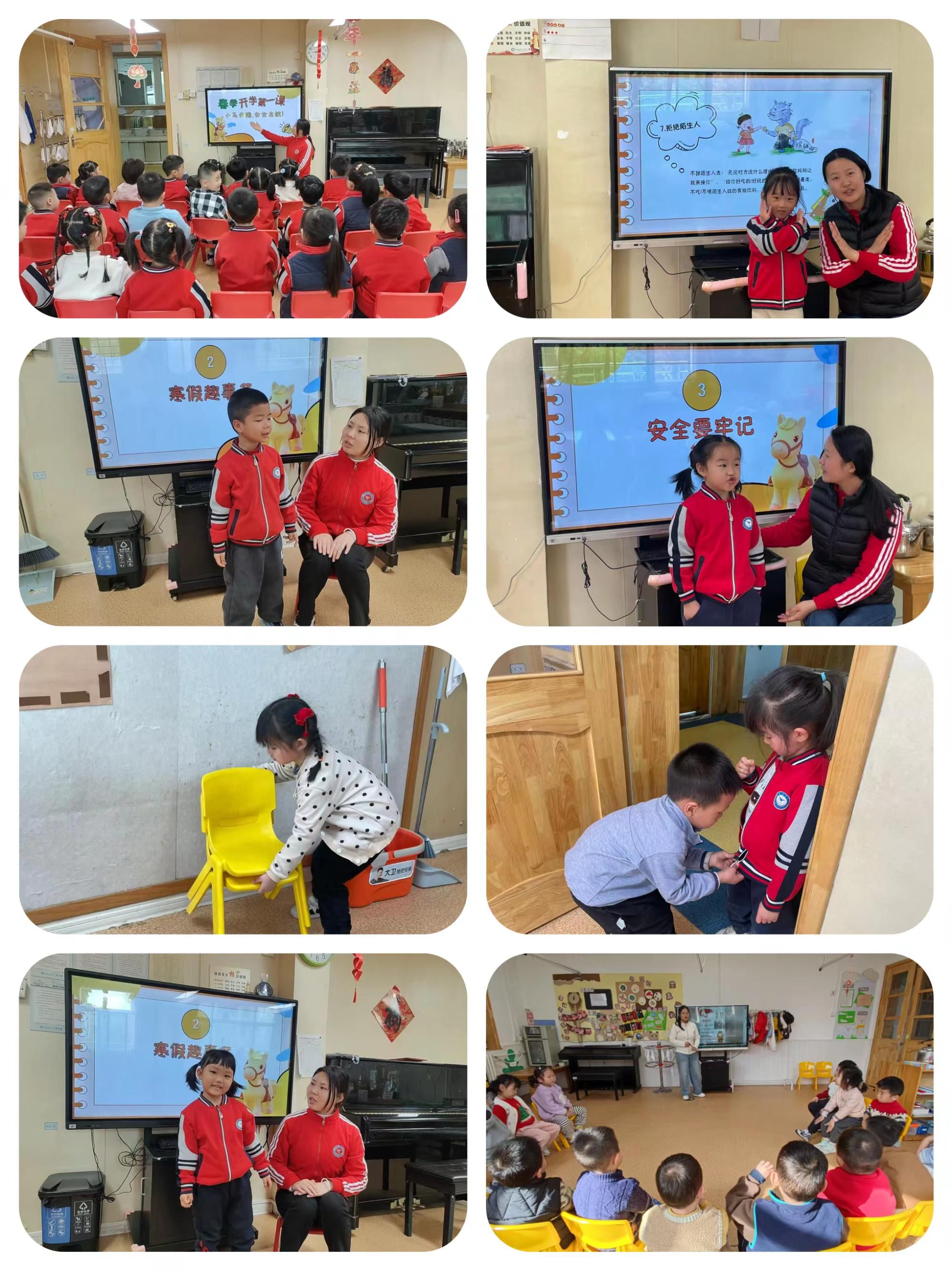 开学第一天,安全系列主题教育活动有条不紊地在每个班级开展着。老师们通过生动的故事、有趣的儿歌、精彩的视频等形式,开展了“开学第一课”主题活动在,增强孩子们的游戏安全、活动安全、交友安全、规则意识的同时,也让宝贝们尽快熟悉幼儿园生活氛围。