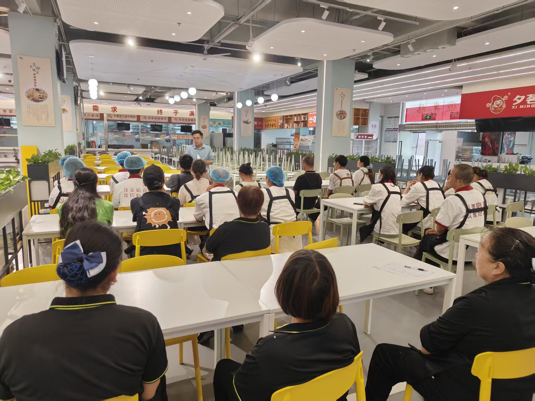 活动期间,各餐厅分别组织召开了食品安全动员暨培训大会,围绕食品安全法律法规、岗位操作规范、突发事件应急处置等内容开展专题培训,强化从业人员责任意识与专业能力,牢固树立“食品安全责任大于天”的理念,以学促改、以训促管,持续提升餐饮服务质量。