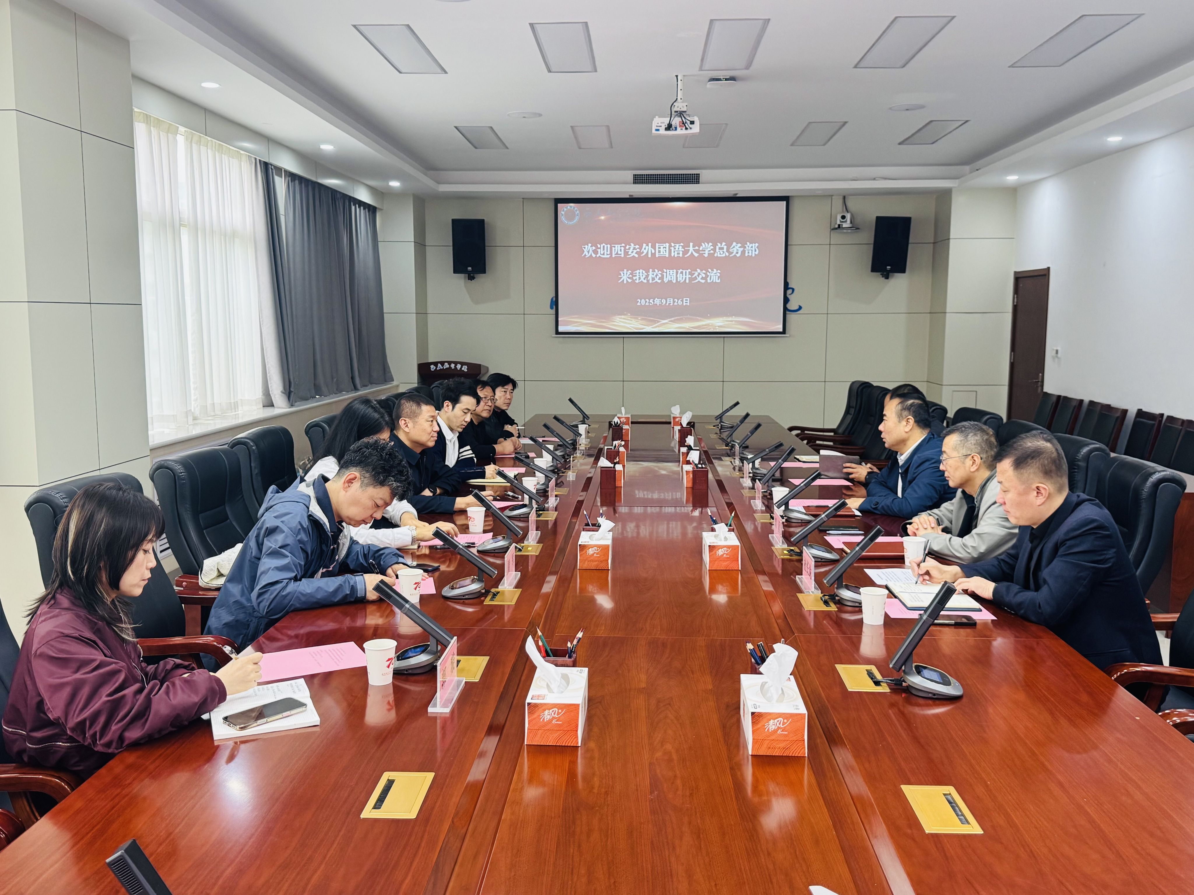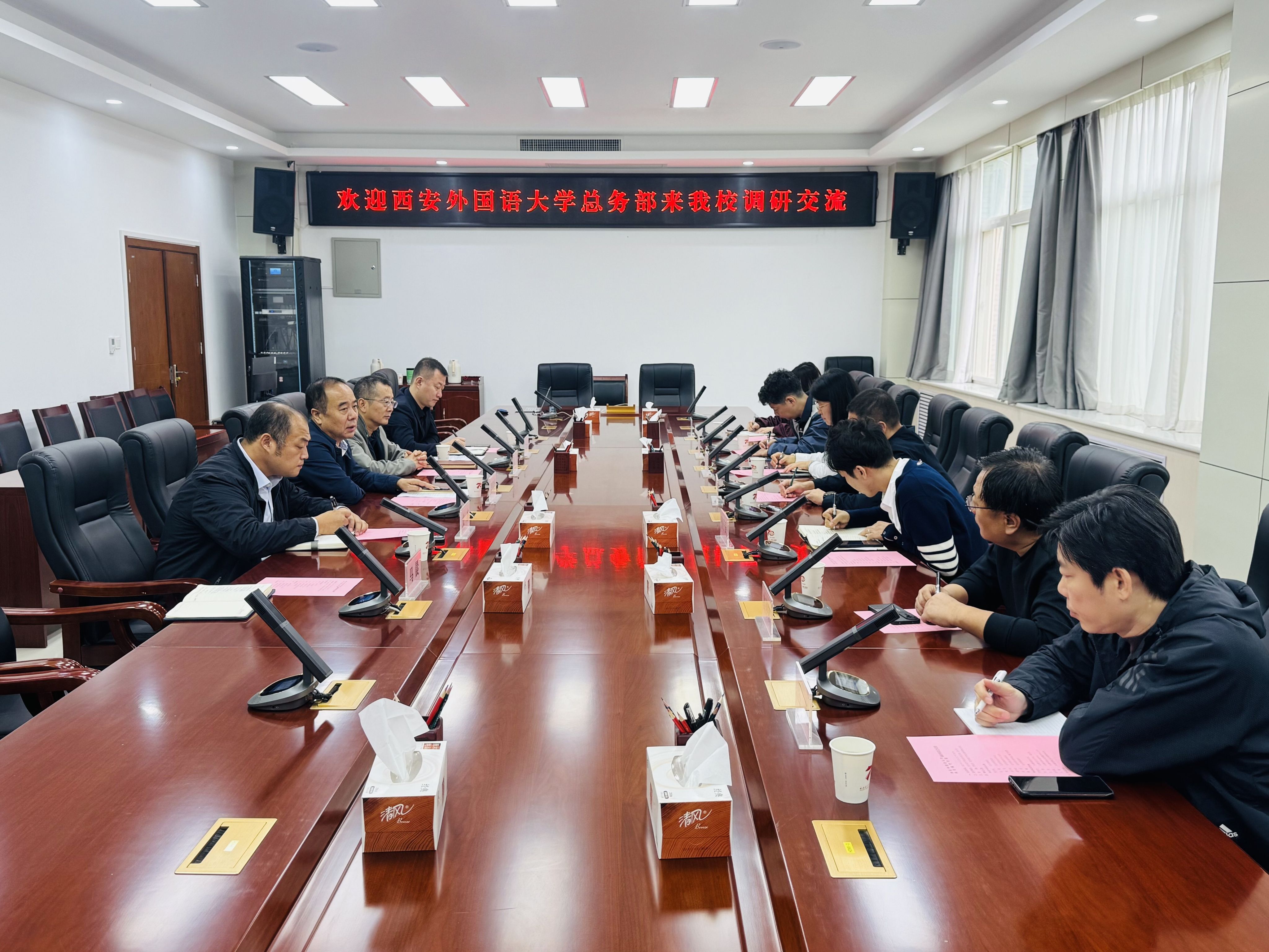 9月26日上午,西安外国语大学总务部部长黄利峰一行7人到我校调研交流,调研座谈会在阎良校区第二会议室召开,后勤保障处处长罗俊忠、后勤党总支书记刘勇、后勤保障处副处长文杰、各科室负责人参加了座谈会。会议由罗俊忠主持。