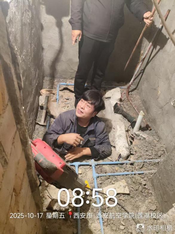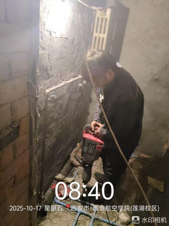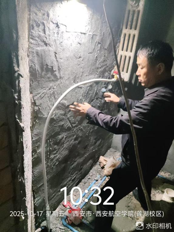 试水打压是供暖前最重要的检测环节。工作人员采取“分层分段、逐步推进”的方式,对全校各楼宇的供暖系统进行压力测试。在试压过程中,维修人员坚守在各个楼层,密切监测压力数据变化,及时处理发现的渗漏点。每个阀门、每处接口都要检查到位,确保不留下任何隐患。