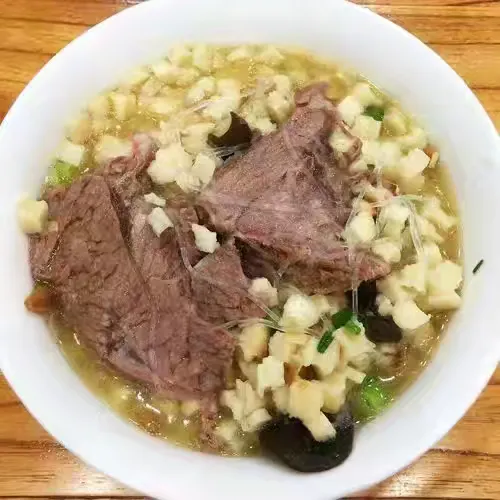 "我选择牛肉泡馍,是因为它里面有牛肉,我爱吃牛肉。"