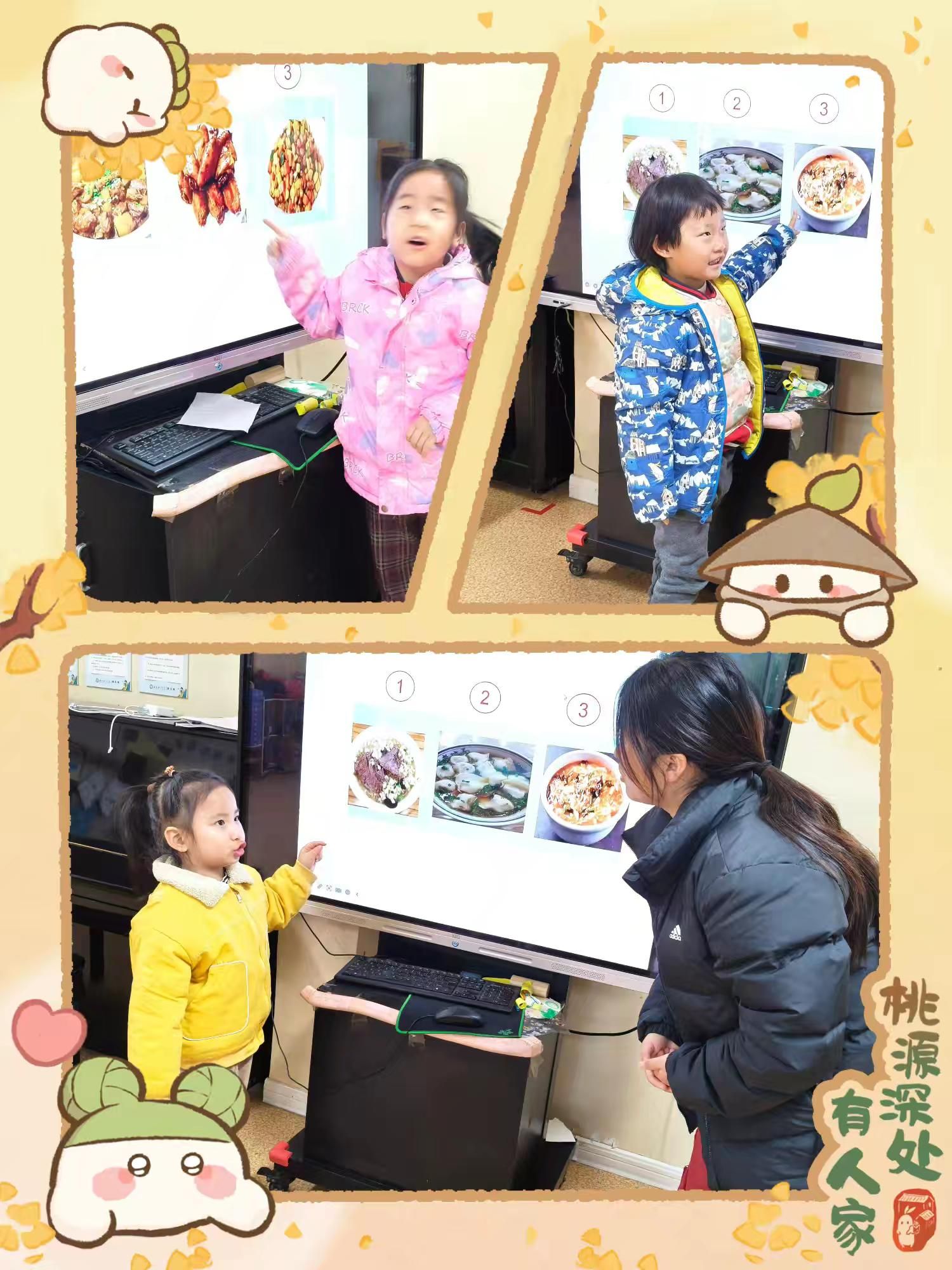 在投票选择开始前,各班教师向孩子们逐一介绍推选的面食和菜品,孩子们在了解菜肴的名称和营养价值等信息后,自主的用贴纸选出自己最喜欢的美食。
